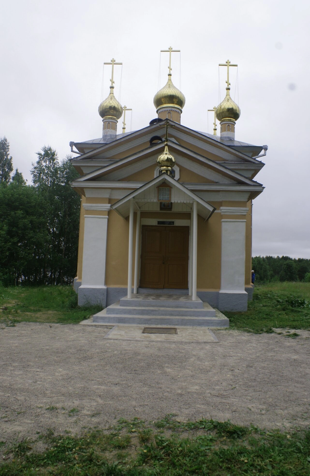 На представленной фотографии запечатлена Всехсвятская церковь, являющаяся частью ансамбля Важеозерского Спасо-Преображенского мужского монастыря, расположенного в Олонецком районе Республики Карелия. Святая обитель находится в живописном месте на берегу Важозера, вдали от суетного мира, что создаёт особую атмосферу умиротворения и молитвенного сосредоточения.
