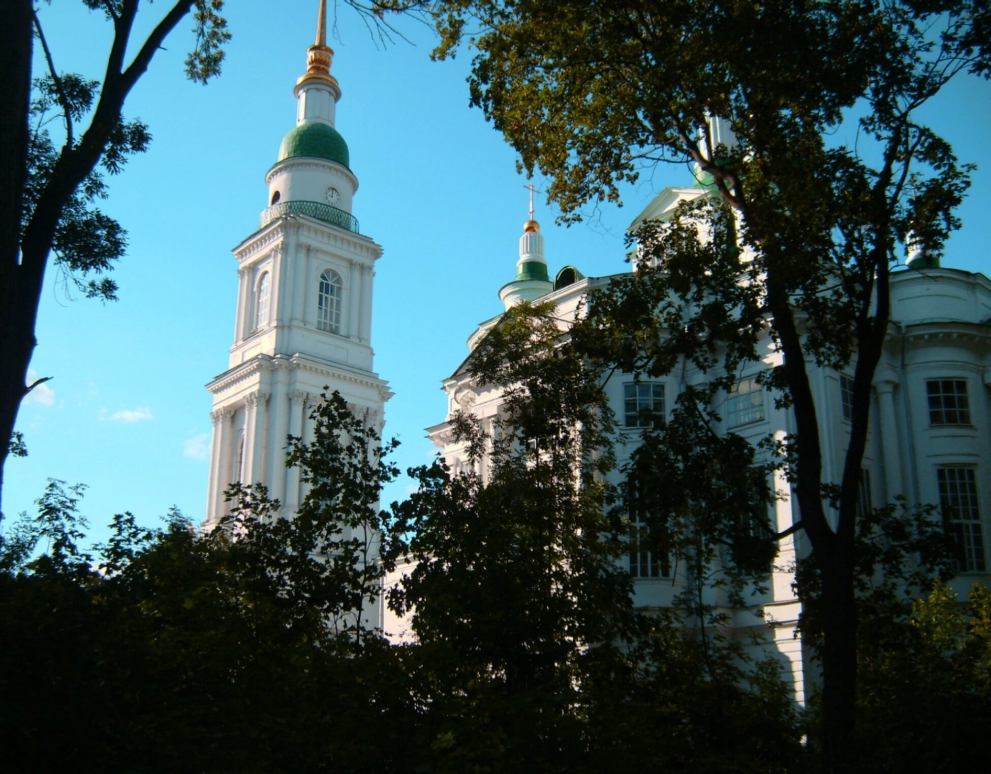 На представленной фотографии запечатлён величественный Всехсвятский кафедральный собор, являющийся одной из архитектурных доминант и духовным центром города Тулы. Снимок позволяет оценить монументальность и строгую красоту этого выдающегося памятника церковного зодчества второй половины XVIII века.
