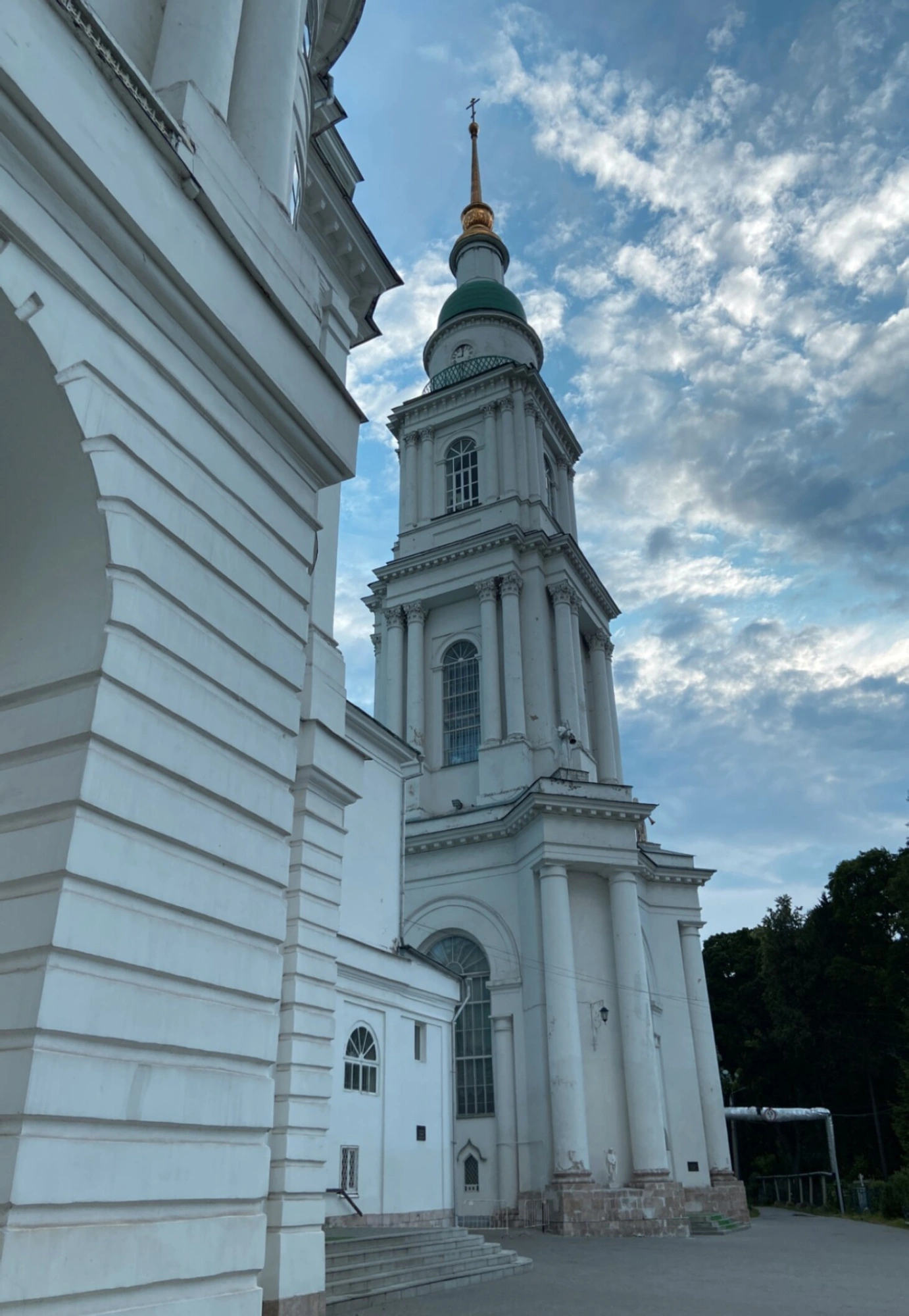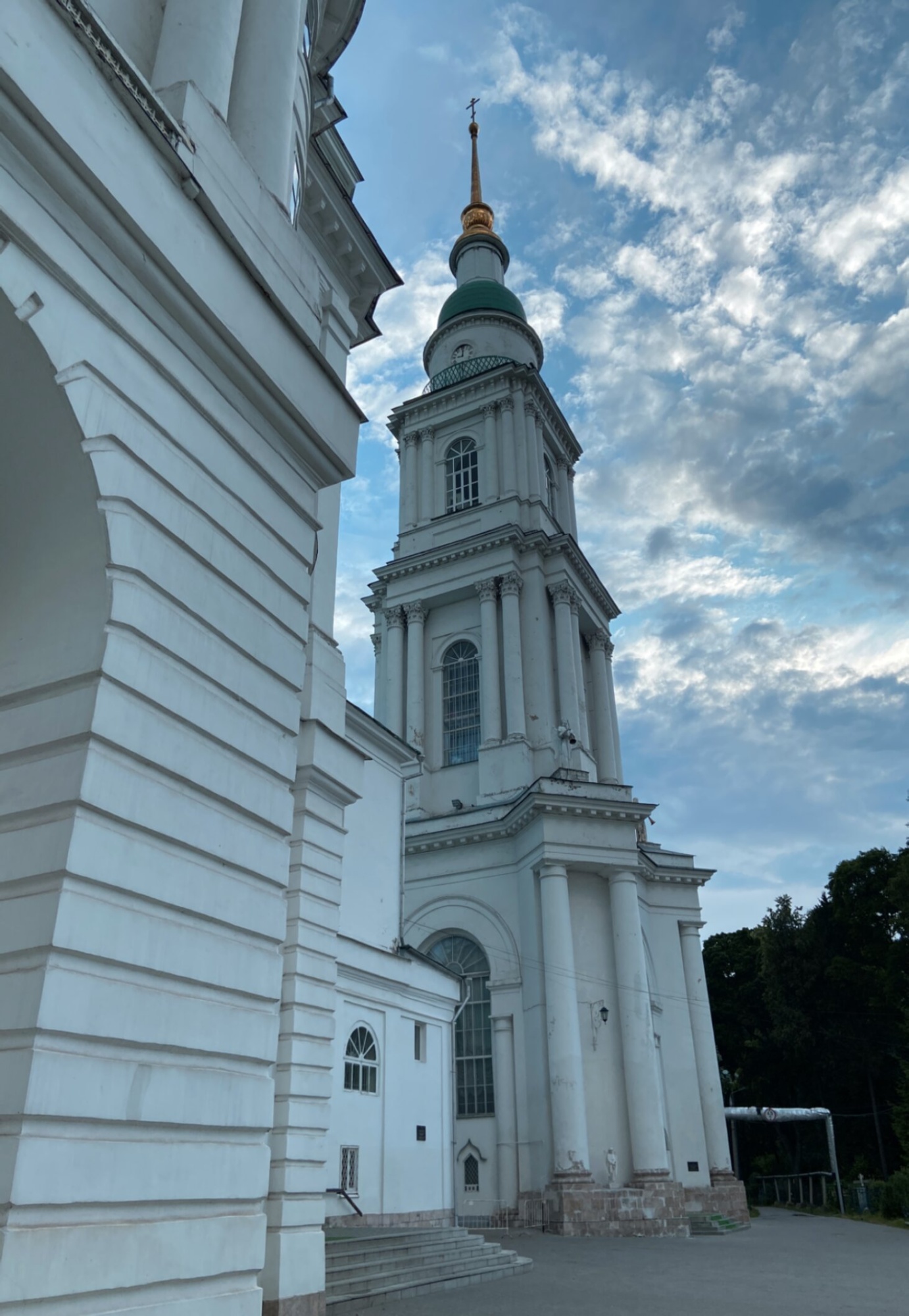 На представленной фотографии запечатлён Всехсвятский кафедральный собор, расположенный в исторической части города Тулы. Этот величественный храм, возведённый в период с 1776 по 1800 годы, является выдающимся памятником церковной архитектуры второй половины XVIII века и одной из архитектурных доминант города.