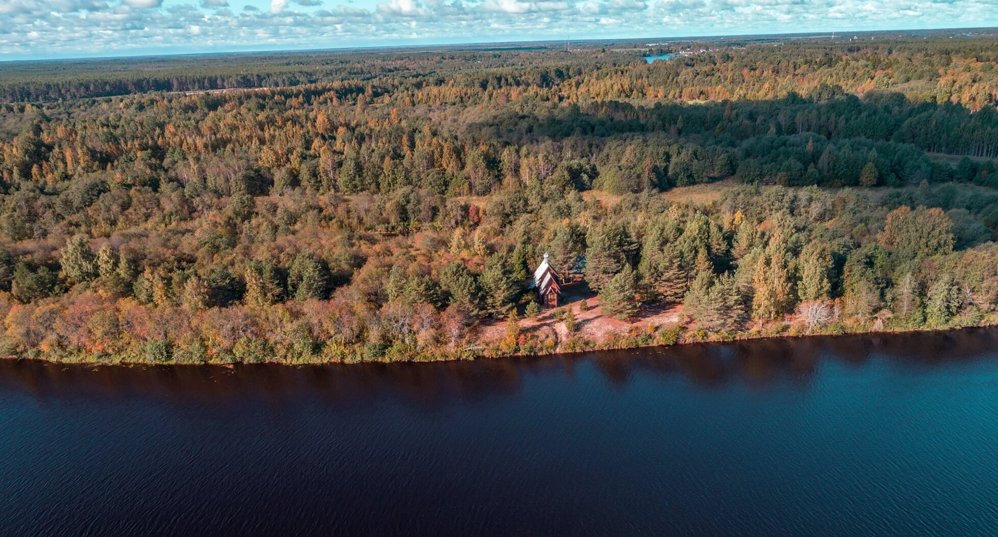Среди этого богосозданного пейзажа, невдалеке от берега, располагается малая архитектурная жемчужина — часовня во имя преподобного Александра Свирского. Небольшое строение с остроконечной главкой гармонично вписано в окружающий ландшафт, свидетельствуя о многовековой традиции русского православного зодчества, всегда стремившегося к единению с творением Божиим.