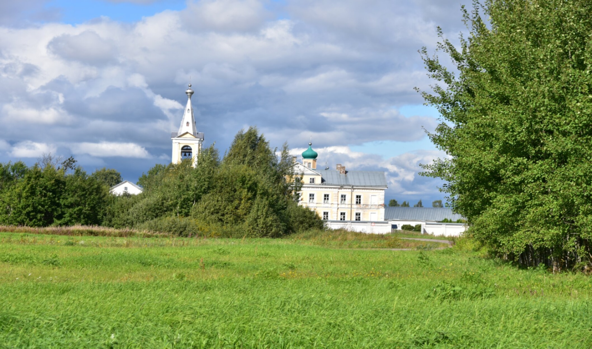 На представленной фотографии запечатлена панорама Свято-Введенского Оятского женского монастыря – одной из древнейших православных обителей земли Ленинградской. Монастырь располагается в живописной местности на берегу реки Оять, что в Лодейнопольском районе.