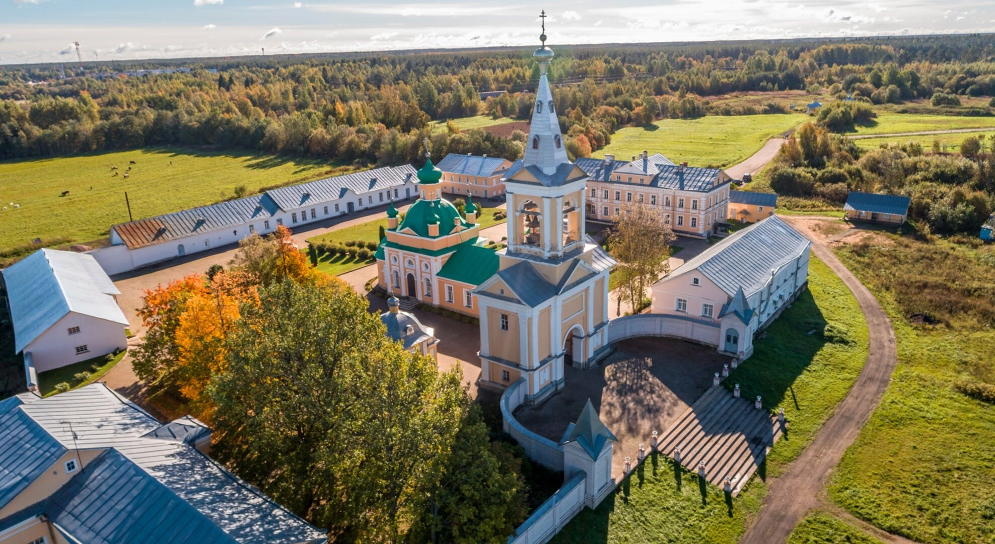 Обитель является не только памятником церковного зодчества, но и важным духовным центром, привлекающим паломников со всей России. Монастырь славится своим строгим уставом, чудотворным источником и благодатной атмосферой молитвенного подвижничества. Данный аэроснимок наглядно демонстрирует уединённое и прекрасное местонахождение монастыря, идеально соответствующее идеалу иноческой жизни — вдали от суеты, для служения Господу.