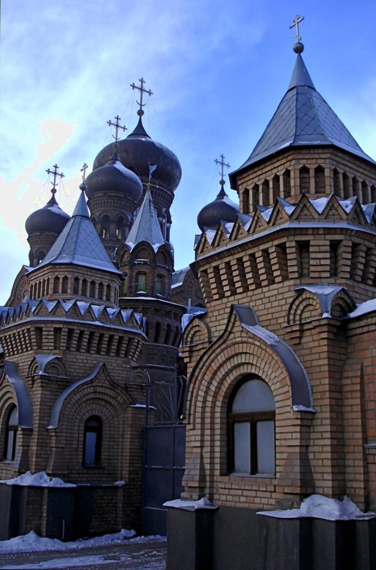 Монастырский храм, освящённый в честь Введения во храм Пресвятой Богородицы, представляет собой прекрасный образец русского церковного зодчества рубежа XIX–XX веков. Здание выложено из красного кирпича и украшено изразцовыми деталями и изящным кирпичным узорочьем. Взгляд невольно устремляется ввысь, к сияющим на зимнем солнце золочёным куполам, увенчанным святыми крестами, символизирующими победу жизни над смертью.