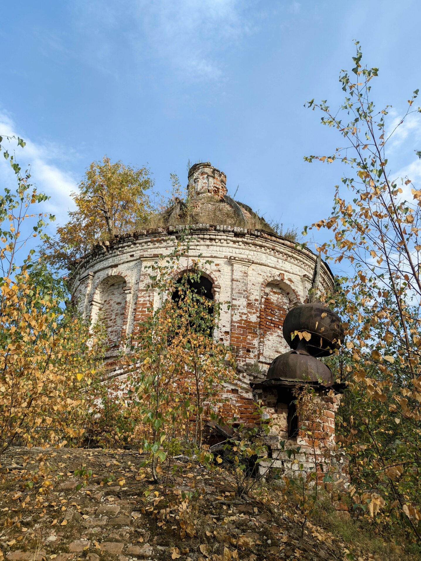 Особую скорбь вызывает активное разрушение святыни: на сводах и стенах проросли деревья и кустарники, кирпичная кладка местами осыпается, в проёмах бывших окон зияют пустоты. Окружающий храм берёзовый лес с пожелтевшей осенней листвой подчёркивает атмосферу забвения.