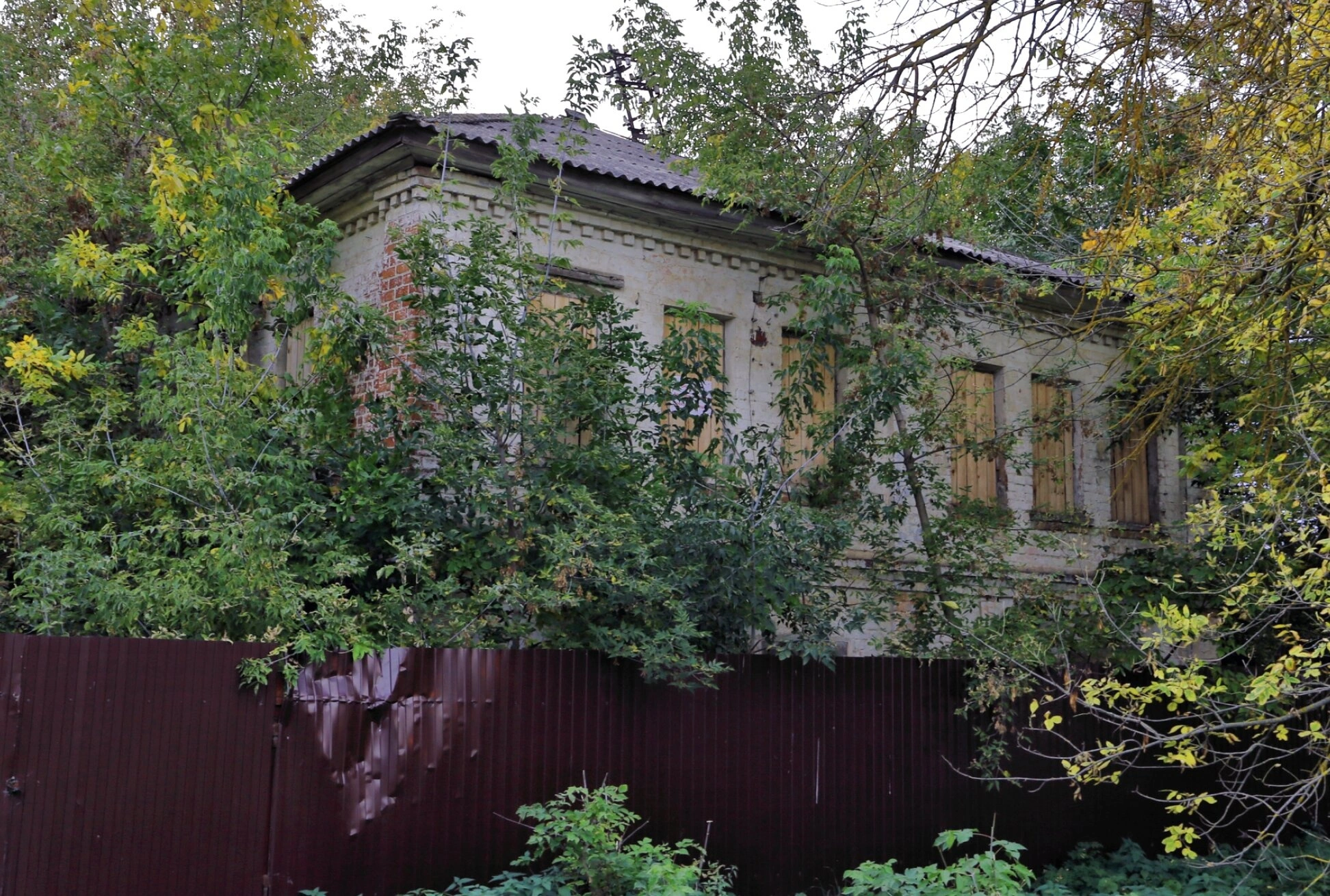 Храм окружает густая растительность: деревья с осенней листвой оттенков от зелёного до ярко-жёлтого и разросшиеся кустарники, которые практически скрыли нижнюю часть здания. На переднем плане виден забор из коричневого профнастила. Общую атмосферу запустения дополняет пасмурное осеннее небо.
