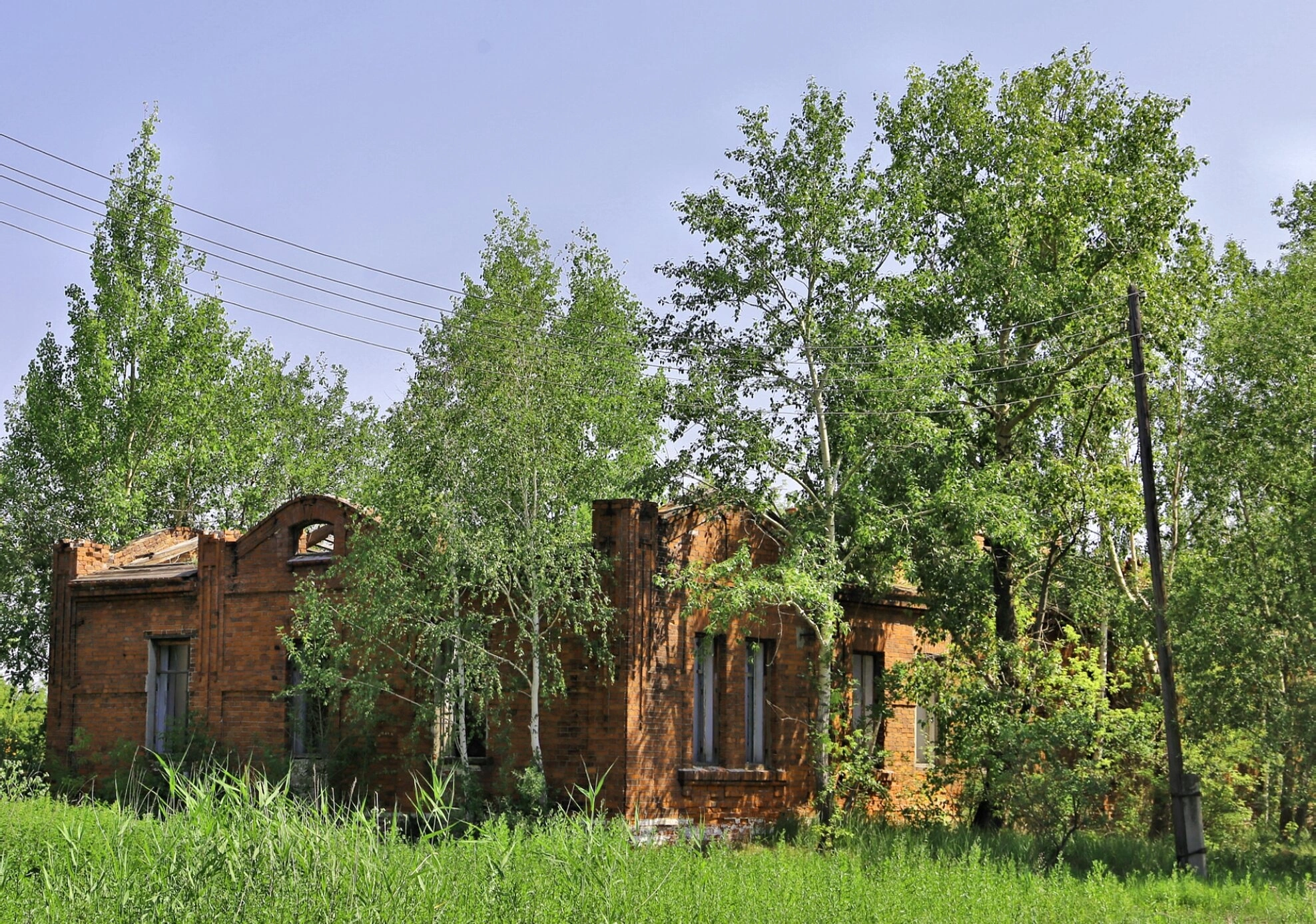 На представленной фотографии запечатлено заброшенное кирпичное здание, расположенное в посёлке Вагай Тюменской области. Данное строение представляет собой исторический объект, внесённый в реестр памятников культурного наследия региона. По архивным данным, это здание являлось жилым домом для работников железной дороги и было построено в начале XX века.