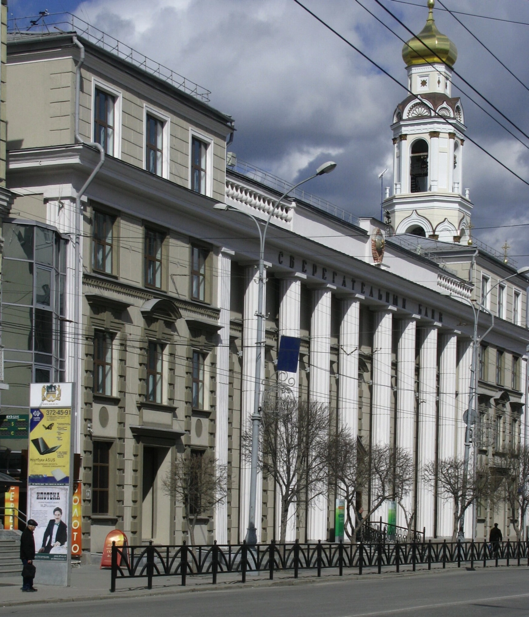 - Здание Сберкассы на фоне Храма Большой Златоуст в Екатеринбурге