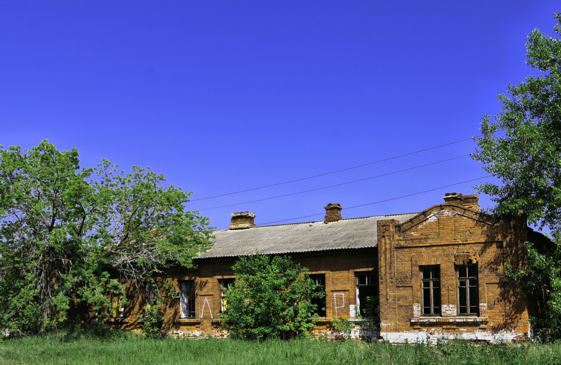На представленной фотографии запечатлено историческое кирпичное здание, расположенное на станции Вагай Тюменской области. Данная постройка является жилым домом для работников железной дороги, что подтверждается архивными данными и географическими координатами, указывающими на расположение в непосредственной близости от железнодорожной инфраструктуры.