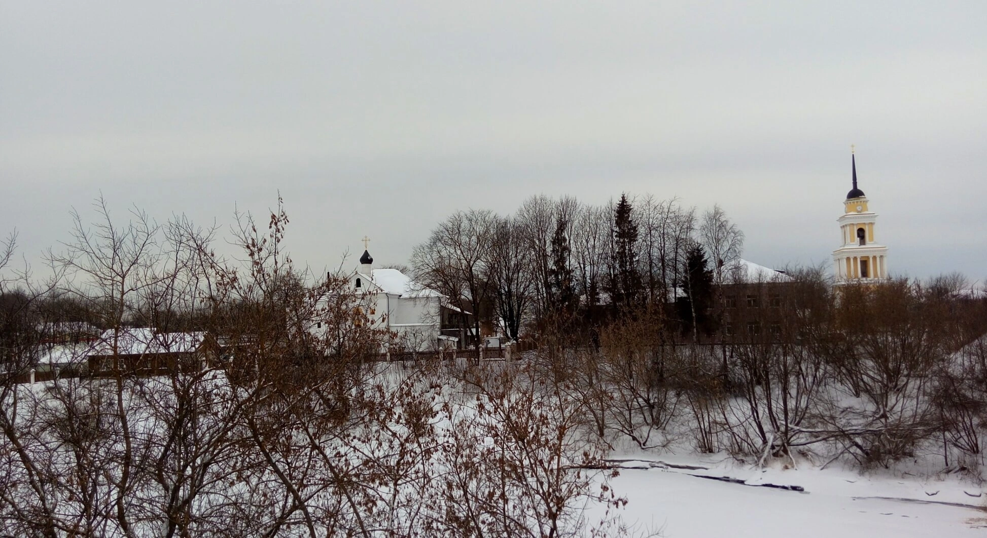 Данный вид открывается на один из старейших монастырей Тверской земли, историческая судьба которого неразрывно связана с духовным становлением русского Севера. Снимок передает не только суровую красоту русской зимы, но и величие православной архитектуры, гармонично вписанной в природный ландшафт.