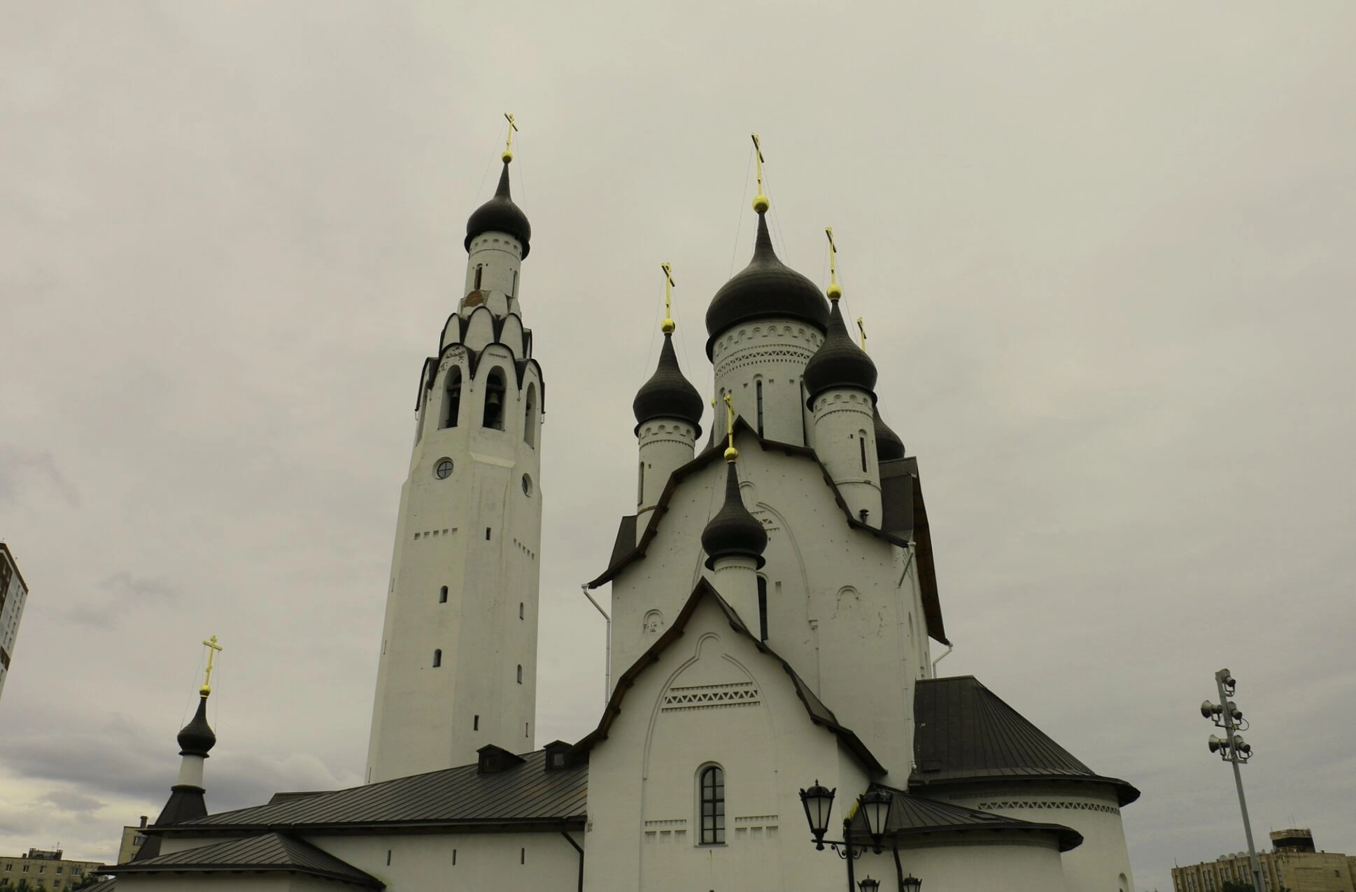 Мягкое рассеянное освещение пасмурного дня подчёркивает умиротворённость сельской местности. Отсутствие людей на снимке позволяет сосредоточить внимание на архитектуре храма и природном окружении, напоминая о непреходящей духовной значимости этой святыни для православных верующих.