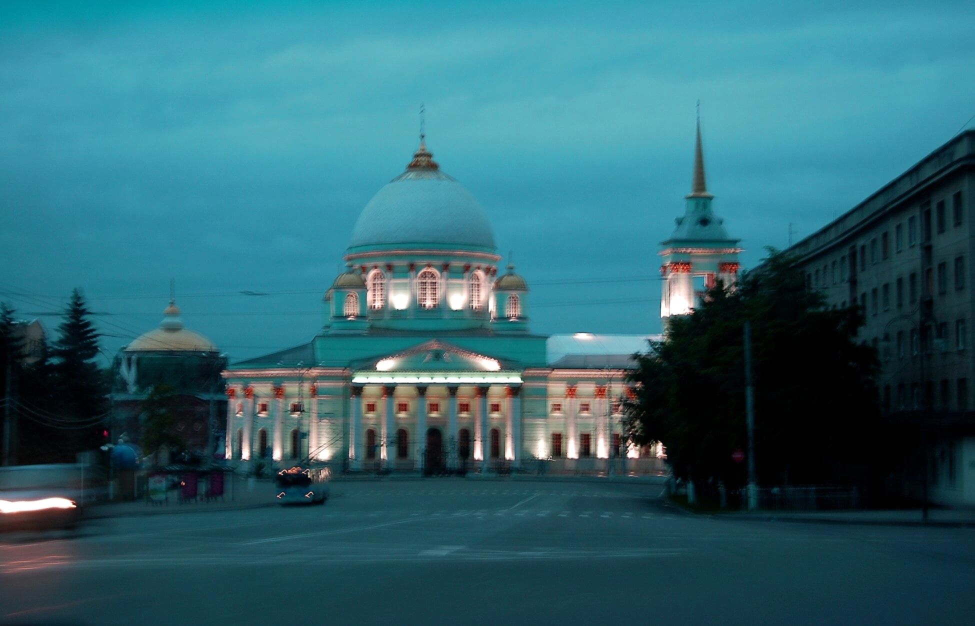 - Знаменский кафедральный собор в Курске: ночная иллюминация