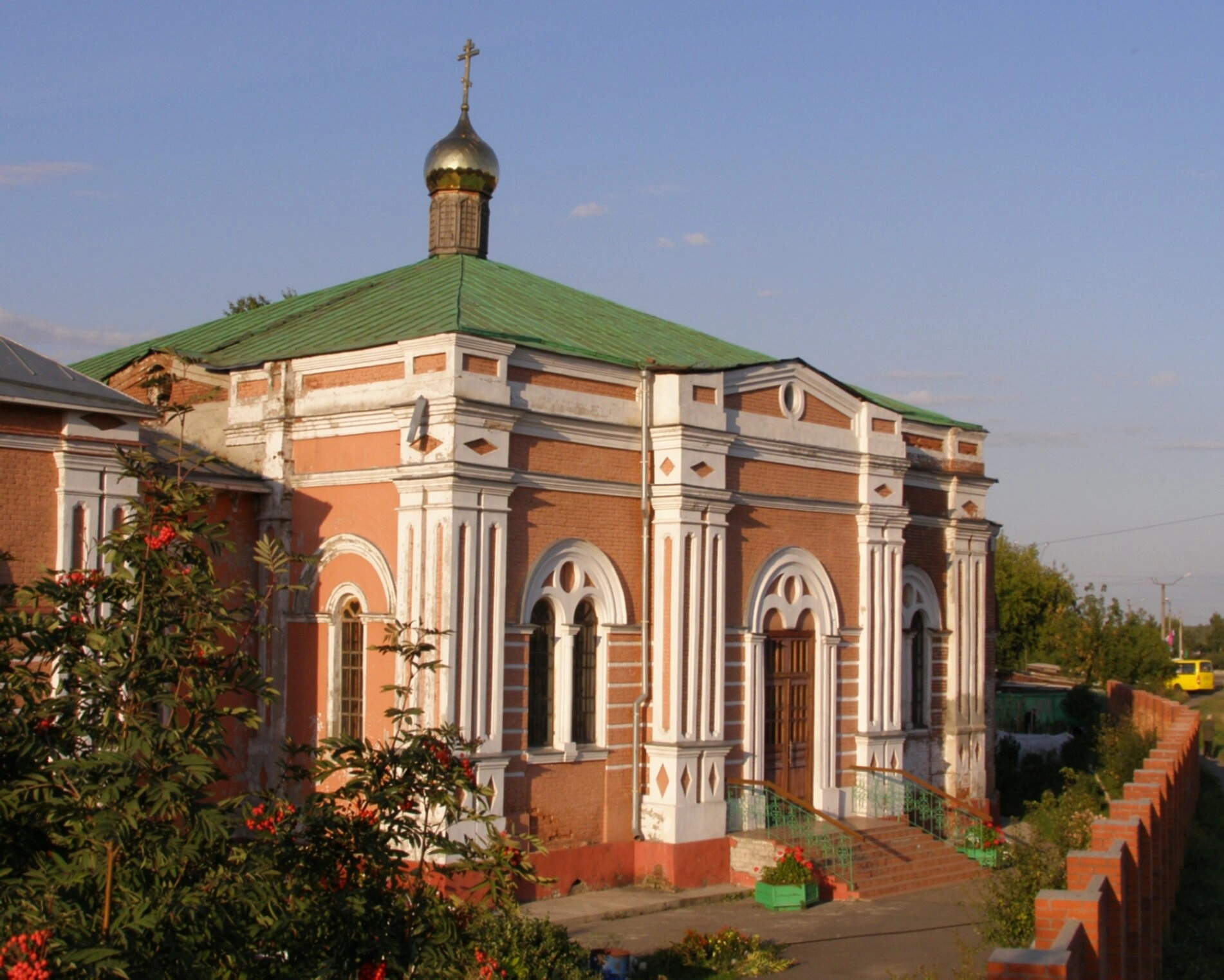 Кирпичное здание храма, изображённое на снимке, представляет собой прекрасный образец церковной архитектуры. Его венчает массивный зелёный купол, символизирующий небесную сферу, который увенчан золочёным главком с водружённым на него православным крестом. Фасад обители украшен строгими пилястрами и высокими арочными окнами, наполняющими внутреннее пространство храма божественным светом. Ко входу в святые врата ведёт каменная лестница с аккуратными перилами.