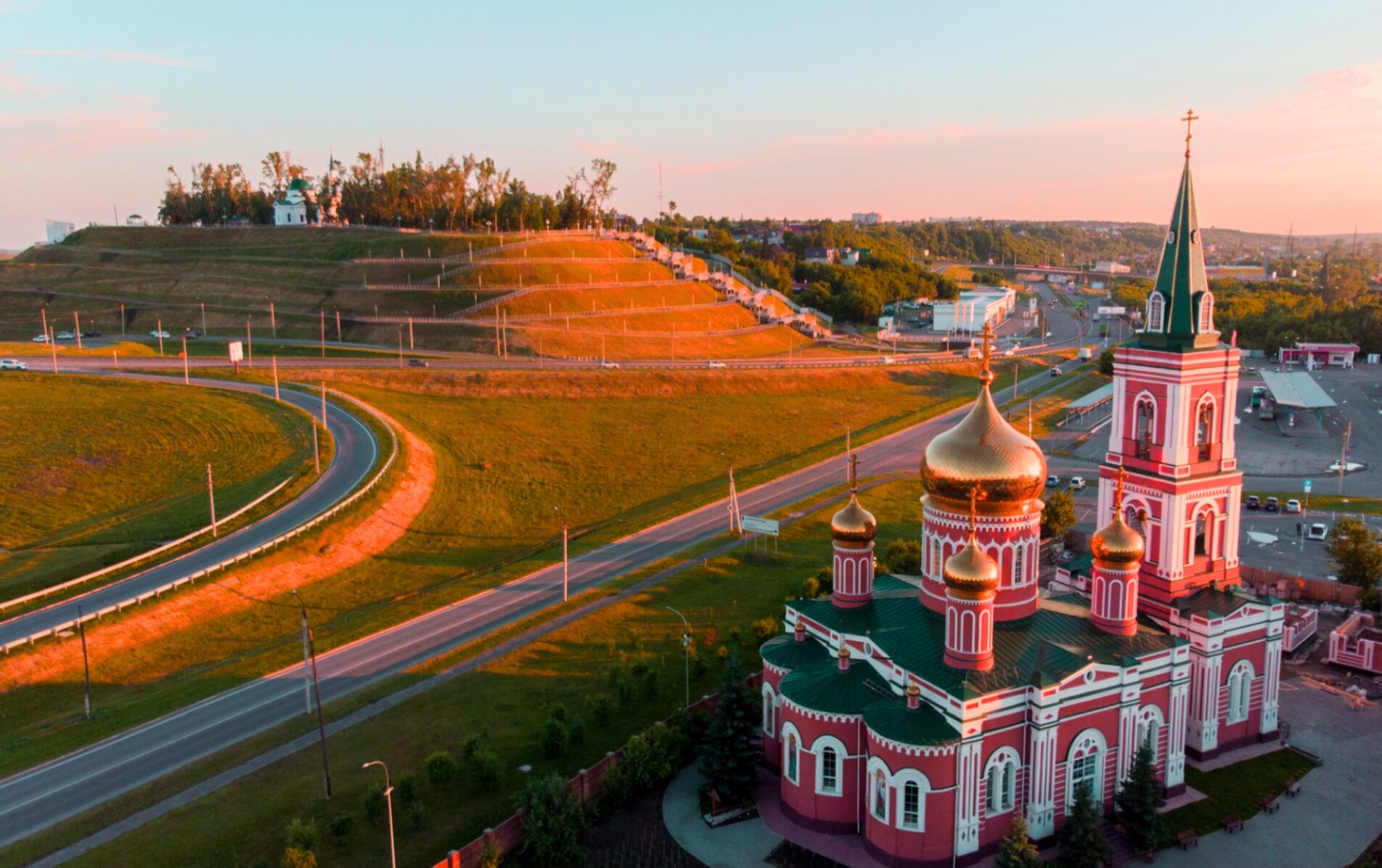 На фотографии запечатлён возрождённый храм в честь иконы Божией Матери «Знамение» — центральный собор Барнаульского Знаменского женского монастыря. Величественное здание из красного кирпича с белым декором, увенчанное золотыми куполами и высокой колокольней, предстаёт во всей своей духовной красоте. Современный облик храма является плодом многолетних трудов по восстановлению его исторического вида, который был утрачен в годы гонений.