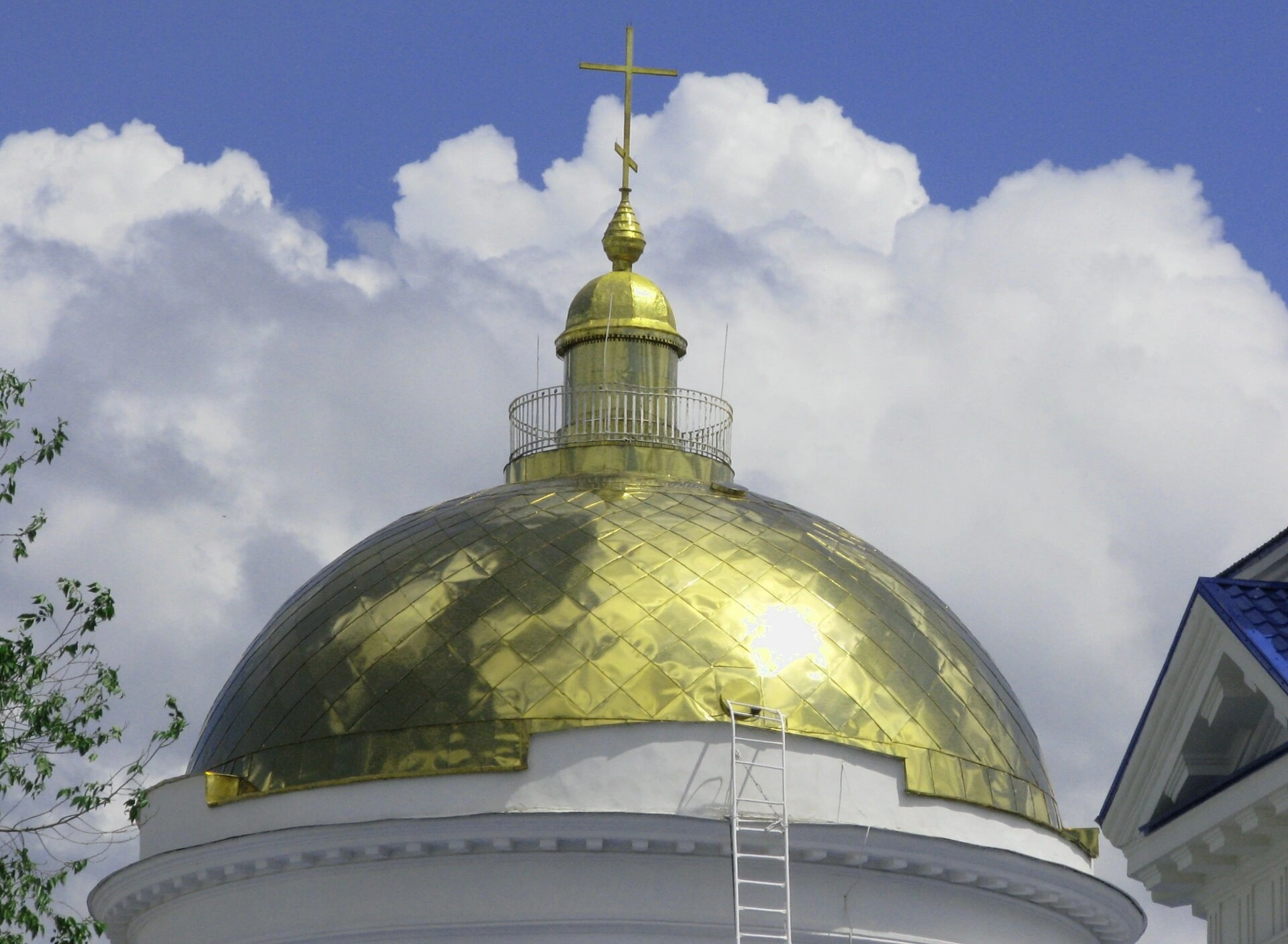По вертикали купола проходит лестница, предназначенная для проведения ремонтных и обслуживающих работ, что позволяет поддерживать святыню в надлежащем состоянии. Этот практический элемент не нарушает гармонию образа, но, напротив, свидетельствует о непрестанной заботе и трудах по сохранению дома Божия.
