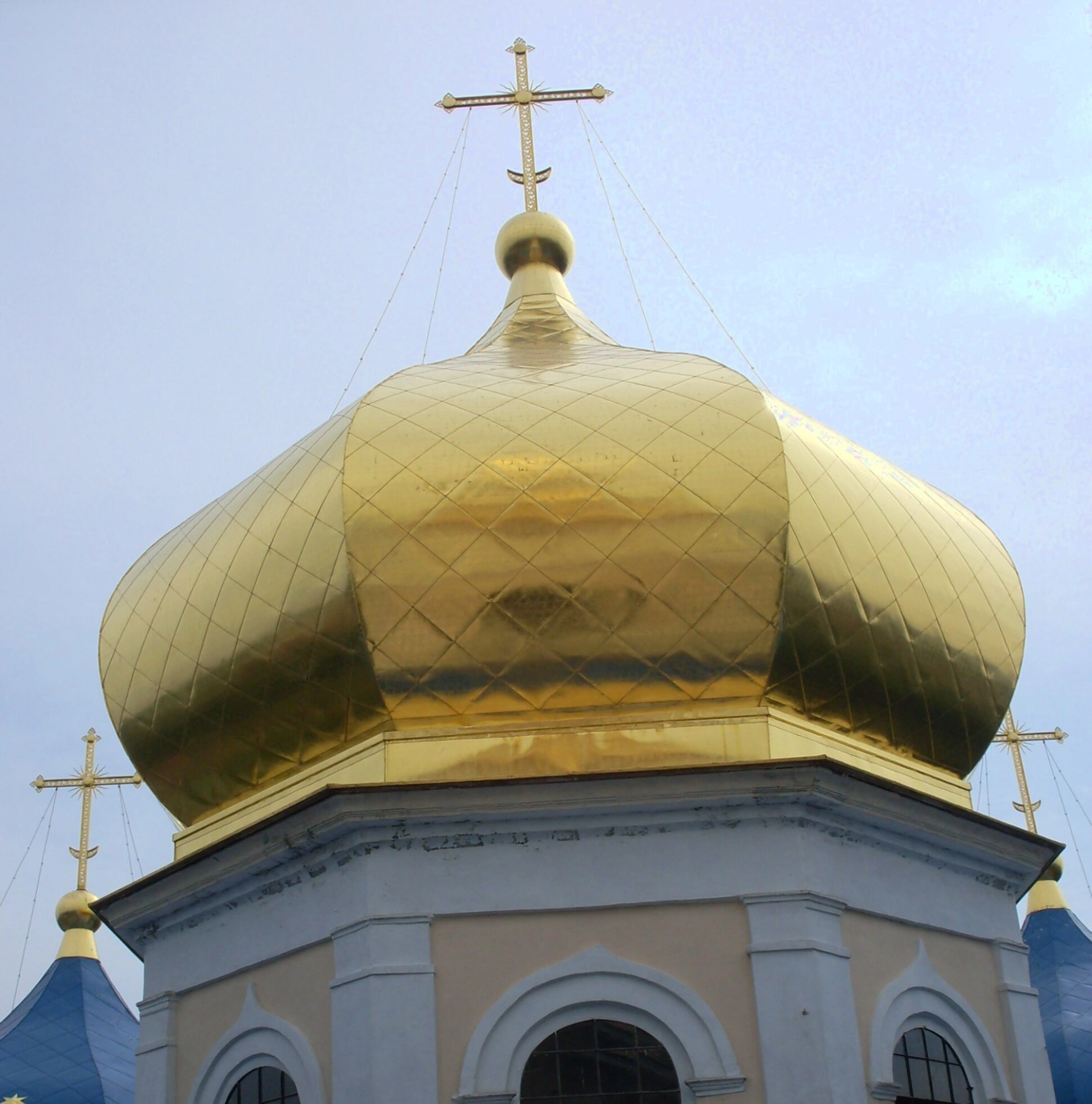 - Золотые купола Спасо-Преображенского собора в Болхове