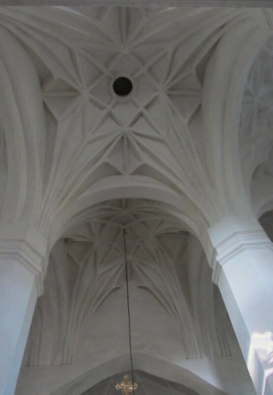 Центральным элементом композиции выступает сложнейшая система готических сводов. Неф храма перекрыт изысканными звёздчатыми нервюрными сводами, которые образуют неповторимый геометрический узор, сходящийся к центральной точке. Место пересечения нервюр акцентировано круглым отверстием, что создаёт особый световой эффект и усиливает сакральное восприятие пространства.