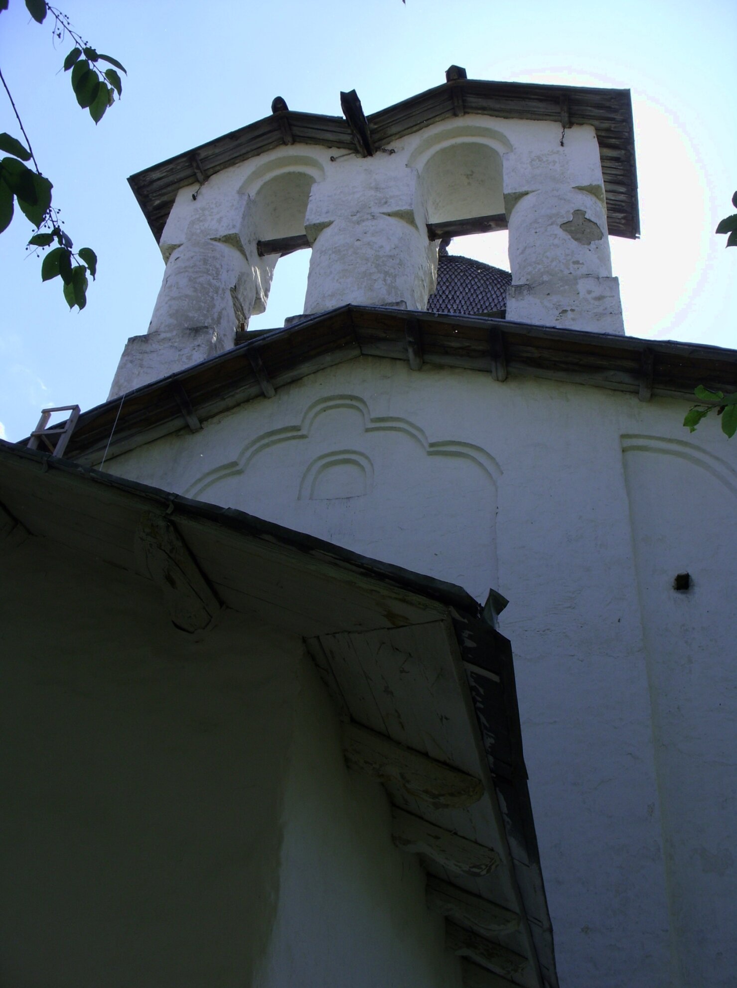 Церковь Николы со Усохи была воздвигнута в 1536 году на месте более древнего храма и является одним из выдающихся памятников псковского зодчества. Название «со Усохи» указывает на место расположения храма — иссохшую, высохшую землю у ручья. Звонница, чьи арочные пролёты видны на фотографии, — характерный элемент псковской архитектурной школы, придающий всему храмовому комплексу неповторимый и узнаваемый облик.